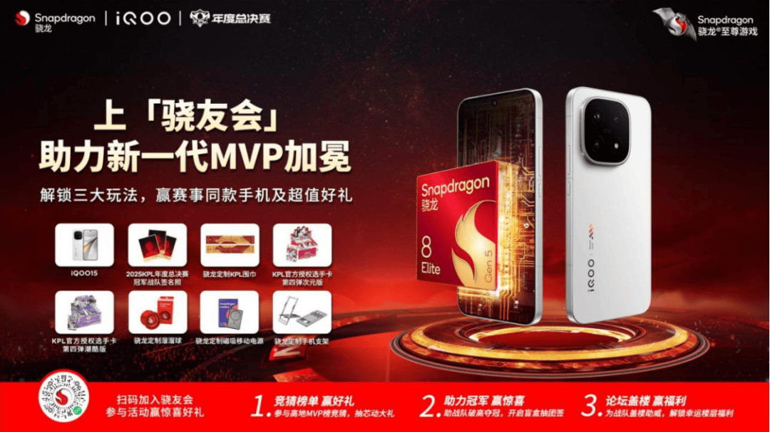而现场,KPL官方合作伙伴、搭载着第五代骁龙8至尊版的IQOO15也在现场带来了“IQOO年总时刻”,在回望过去辉煌的同时,亦为移动电竞领域的传奇续写新篇章。