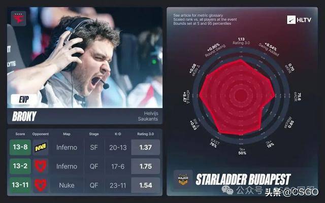 在1.19 rating的小组赛表现之后,这位拉脱维亚狙击手几乎以一己之力定义了对阵MOUZ的四分之一决赛,甚至让解说席上的Mauisnake给这场比赛起了个外号——“疯狂星期五(broky Friday)”。