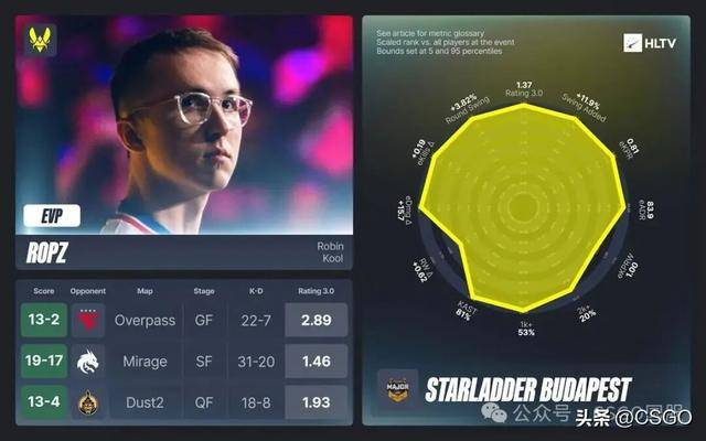 尽管ropz在MVP的评选中惜败给ZywOo,但在如此重量级的赛事中交出这样一份答卷,在TOP20的评选中,这样的影响力和拿下MVP几乎无异。