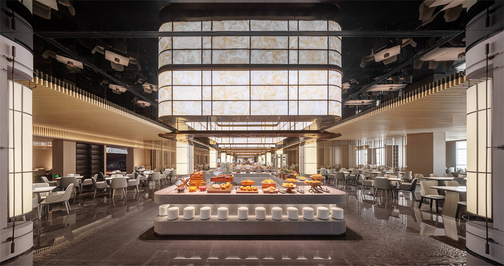 位于郑州金水区黄河路与南阳路交汇处的遇见山海城市度假区,以5层立体空间、6.9万㎡全景沉浸式体验,融合温泉、室内水乐园、世界美食、亲子乐园、数字电竞、音乐广场等多元业态,以吃喝玩乐吃住泡一站全包,打造真正意义上的“全包式陆地游轮”体验。