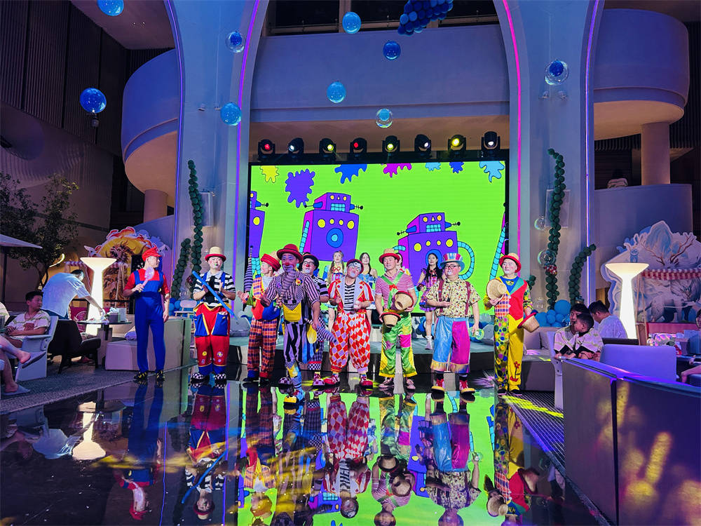 周年庆当天,“小丑嘉年华”贯穿始终,色彩斑斓的小丑们携气球与魔术全场巡游互动,与孩子们击掌嬉戏,掀起阵阵欢笑。与此同时,萨克斯的深沉与小提琴的灵动交织演奏,为热闹的庆典注入优雅韵律,让游客在动静之间尽享视听盛宴。