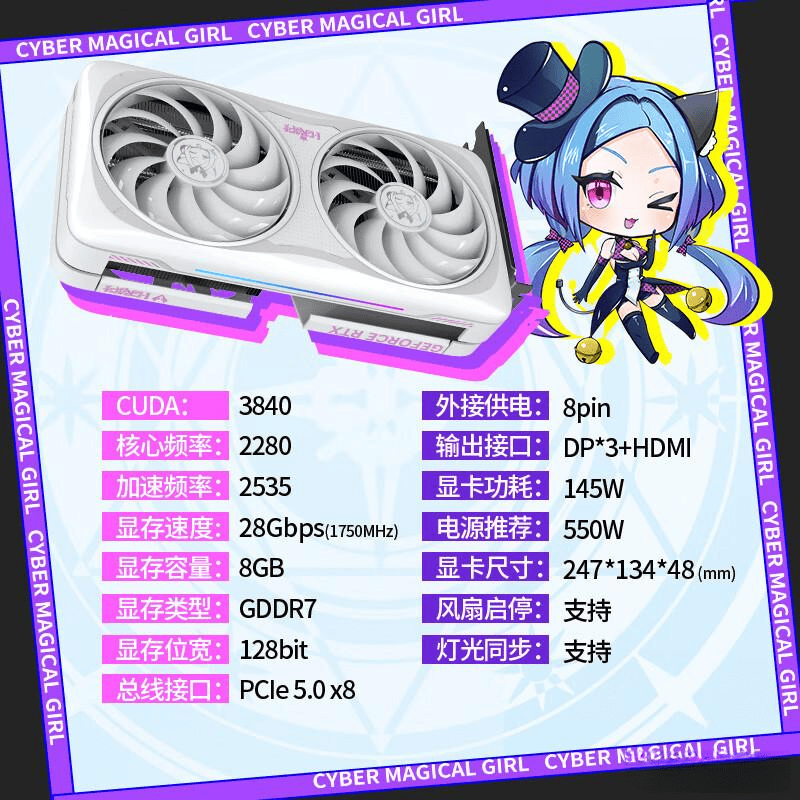 卓越显存性能:配备8GB GDDR7显存,确保在高负载情况下依然发挥优异,轻松应对各种大型游戏与应用。