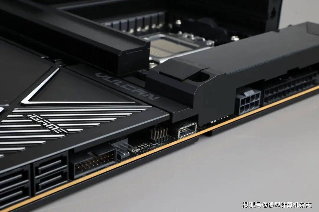 此外这款主板拥有连接高性能移动存储设备的能力,在它的IO背板接口上,它提供了两个接口带宽达40Gb/s的USB 4 DP接口。在连接像闪迪E82移动固态硬盘这样的USB4移动存储设备,可以带来突破3700MB/s的顺序读写速度。这两个接口还支持DP-Alt技术,可以支持视频信号的输出,最高支持4K@60Hz的画面规格。因此,七彩虹没有为这款主板设计HDMI、DP等常见视频输出接口,毕竟在这类旗舰主板上,CPU内置显示核心被使用的概率并不高。当然高速的前置USB接口也不能少,七彩虹iGame X870E火神主板为用户提供了一个传输带宽为20Gb/s的USB 3.2 Gen 2×2前置接口,支持60W供电功能,可对手机、平板实现快速充电。值得注意的是,其IO背板接口上也设计有很多超频元素,包括BIOS升级按钮、BIOS还原按钮与X3D一键超频按键。后者与七彩虹显卡上的超频按钮类似,无须用户进入BIOS,按一下就能提升处理器频率,且能保证处理器稳定工作。