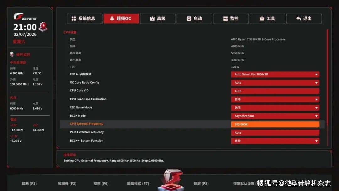 ▲通过降压超频,七彩虹iGame X870E火神主板可以把锐龙7 9850X3D的加速频率上限再提升200MHz。