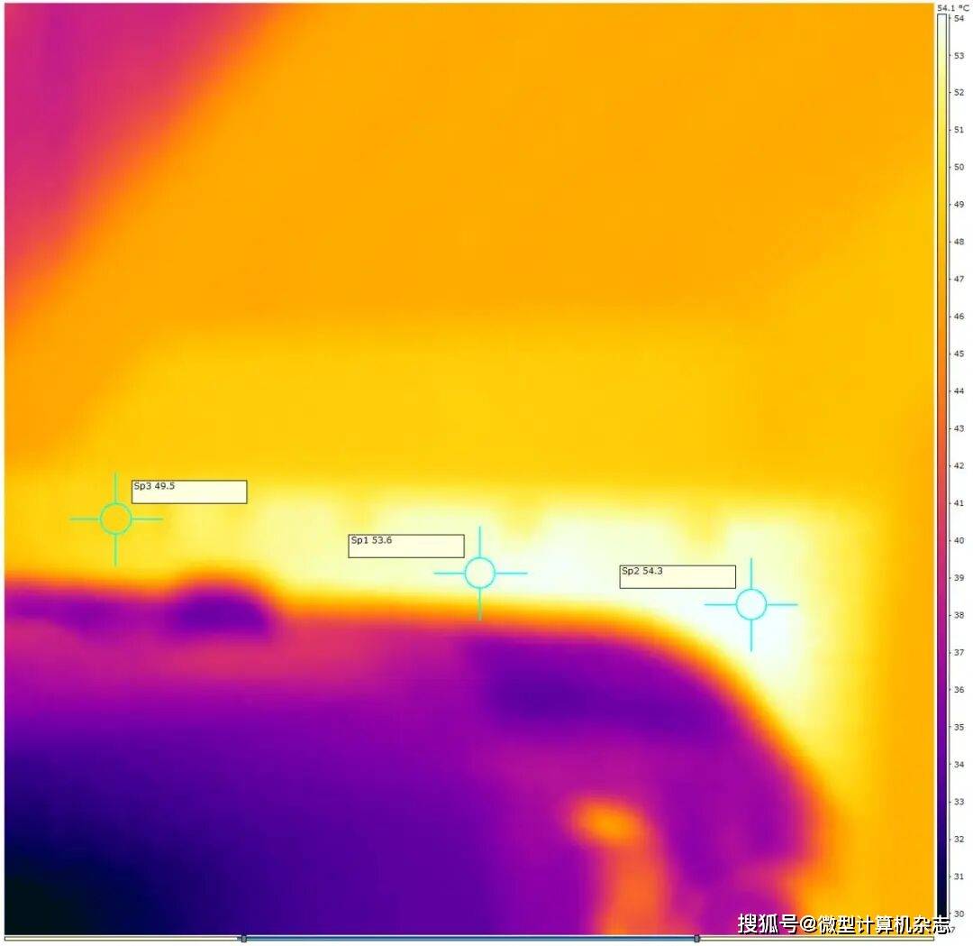 ▲锐龙7 9850X3D以135W功耗工作半小时后,主板供电电路的发热量并不高。