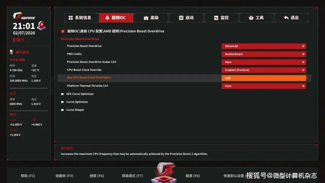 ▲普通用户可以在BIOS首页将主板工作模式设置为“精准增压超频模式”即打开PBO,这也是最常见的工作模式。