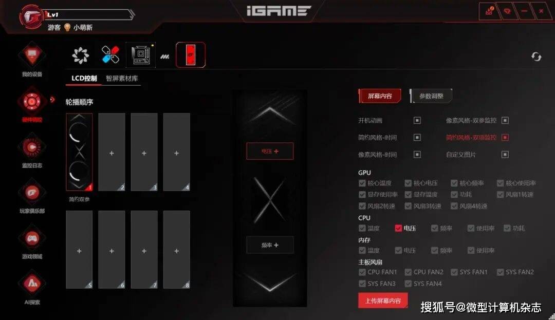 ▲用户可通过iGame Center工具软件来决定火神智屏LCD的显示内容
