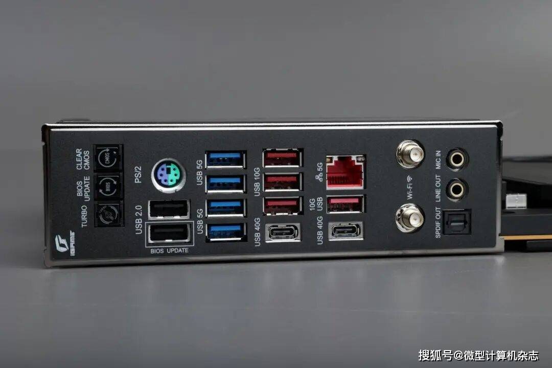▲主板IO背板提供2个带宽达40Gb/s的USB4接口,1个PS2键鼠接口,方便玩家进行极限超频,并设计有BIOS升级按钮、BIOS还原按钮与X3D一键超频按键。