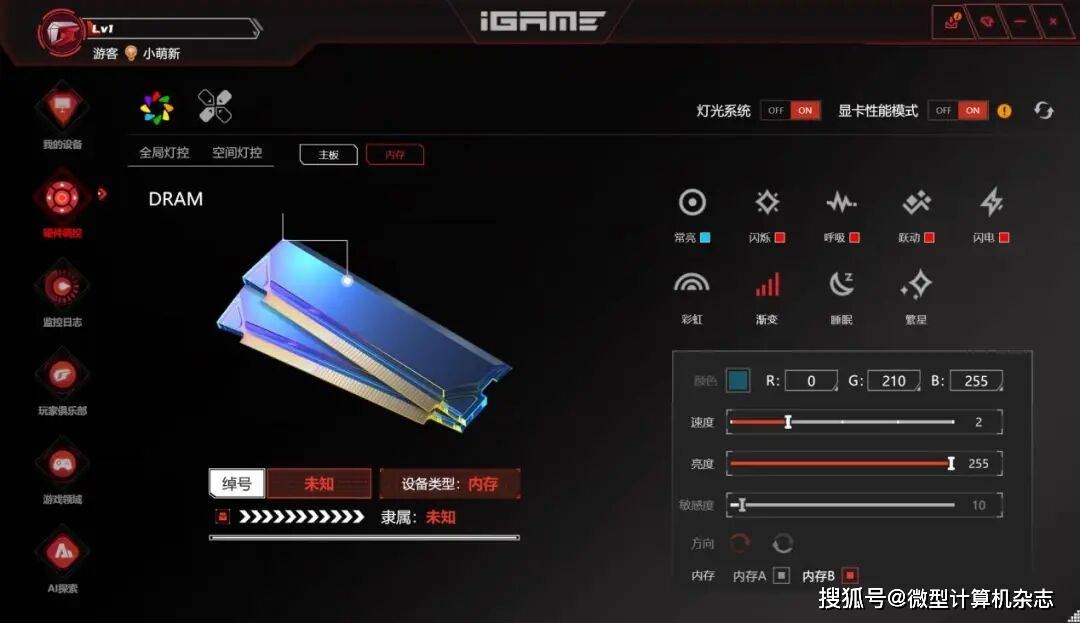 ▲主板、内存的RGB灯效都可以通过iGame Center工具软件控制。